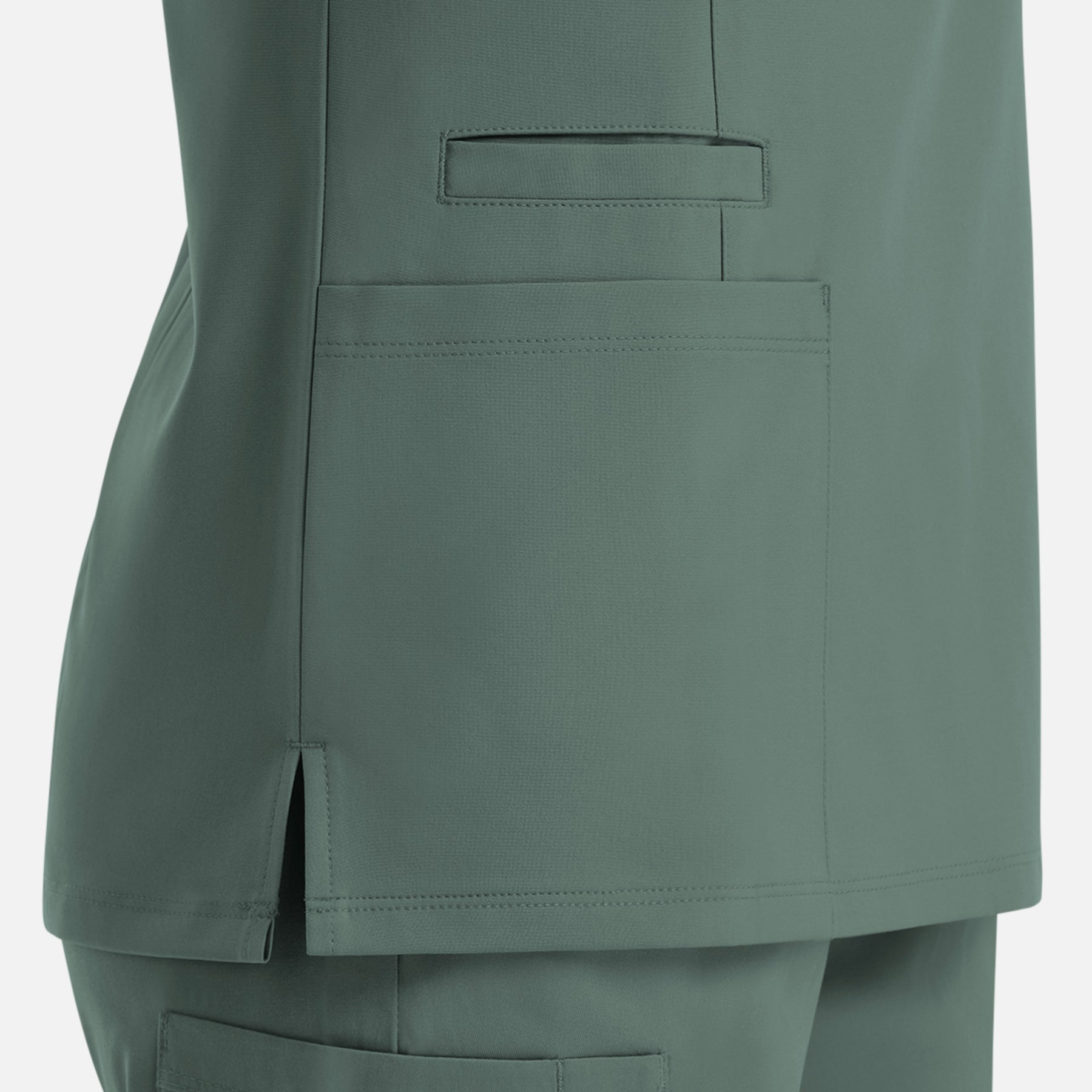 This modern scrub top offers a perfect mix of style and functionality. Designed with a modern fit, it enhances your silhouette while keeping you comfortable all day. The durable, moisture-wicking fabric keeps you dry and fresh through long shifts. It includes three practical pockets for storage and a bungee loop for your ID badge. Thoughtful front seams and a darted back add a touch of structure, while side vents ensure easy movement.